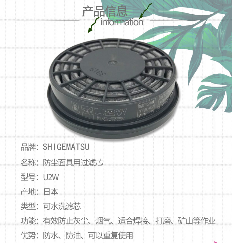 SHIGEMATSU/日本重松制作所防塵面具用過濾芯CU2W 防煙氣適合焊接打磨礦山等作業(yè)