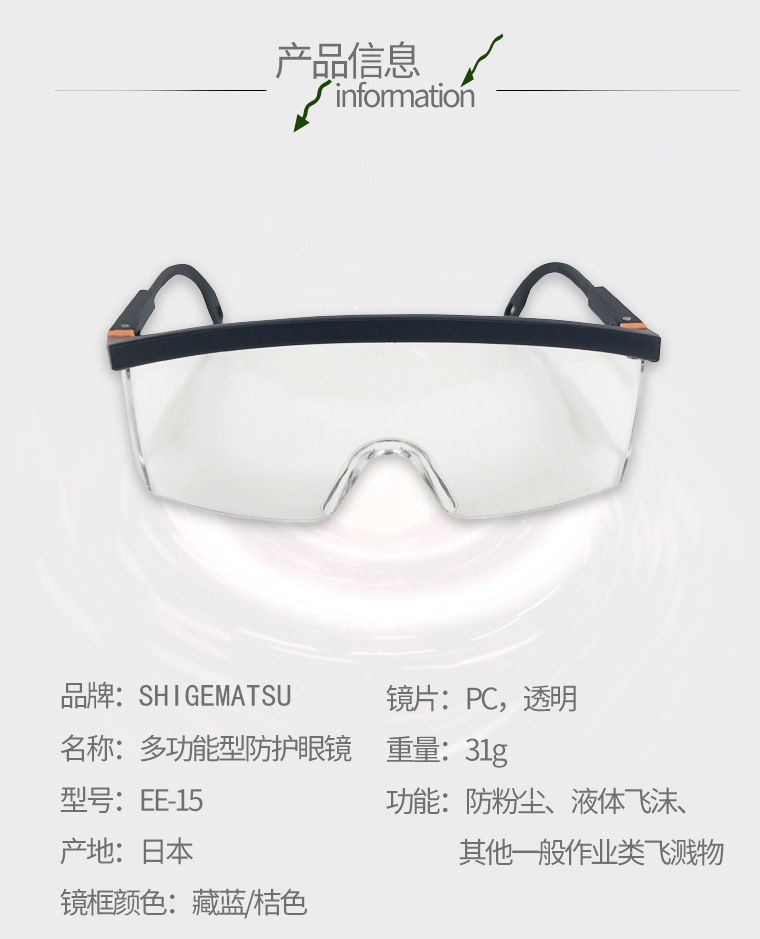 SHIGEMATSU/日本重松制作所防護眼鏡EE-15 防塵 防風(fēng) 防飛濺 藏藍色