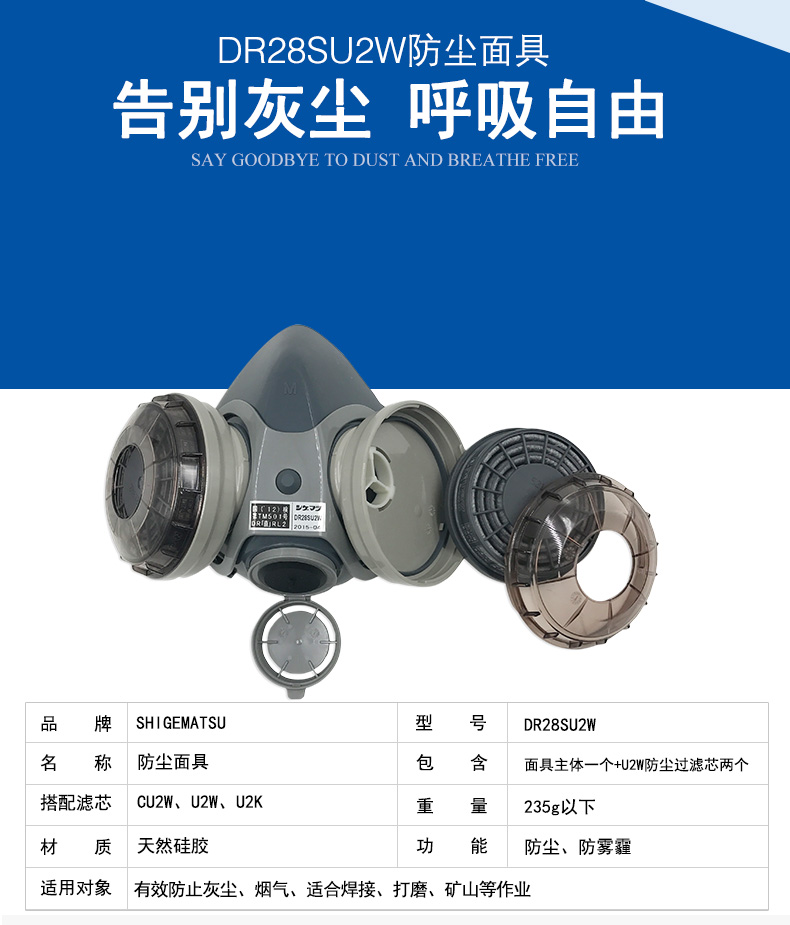 SHIGEMATSU/日本重松制作所口罩DR28SU2W編織頭帶防塵面具焊接打磨礦山等 面具(含兩個(gè)U2W濾芯)