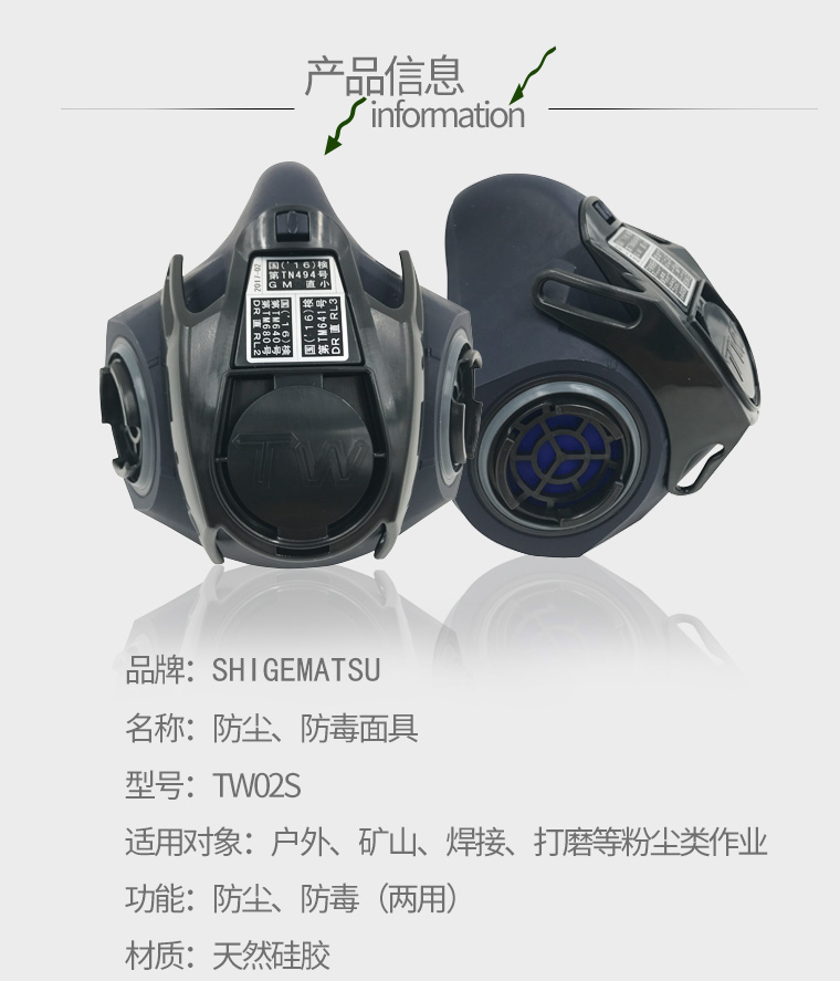 SHIGEMATSU/日本重松制作所口罩TW02S 防塵防毒兩用面具礦山焊接打磨等粉塵類 TW02S面具一個(gè)(不含濾芯)