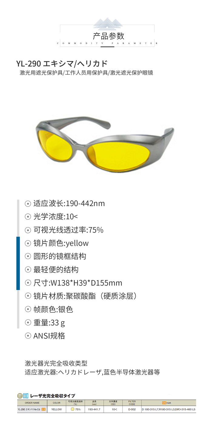 山本光學(xué)激光眼鏡YL-290エキシマ/He-Cd